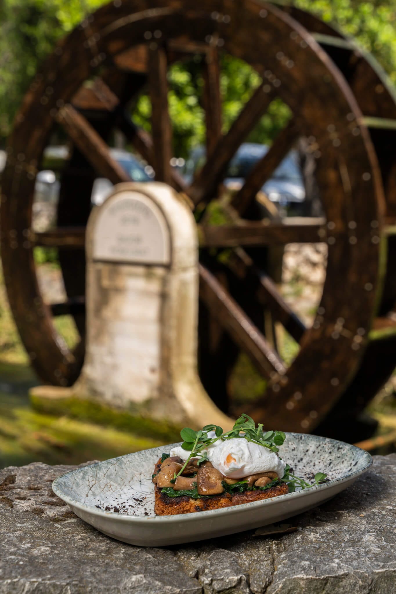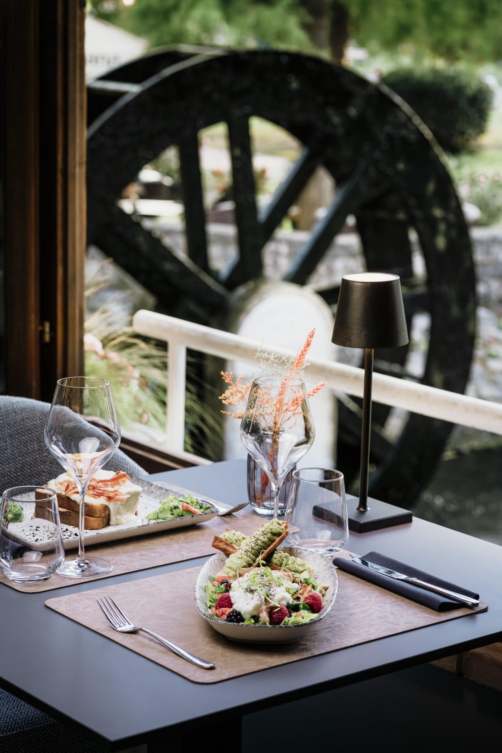 Uživajte u opuštenoj atmosferi naše konobe, okružene bujnim zelenilom i prirodnim ljepotama parka. Smješteni u srcu grada, u neposrednoj blizini marine, nudimo jedinstveno iskustvo objedovanja s predivnim pogledom na mlin.